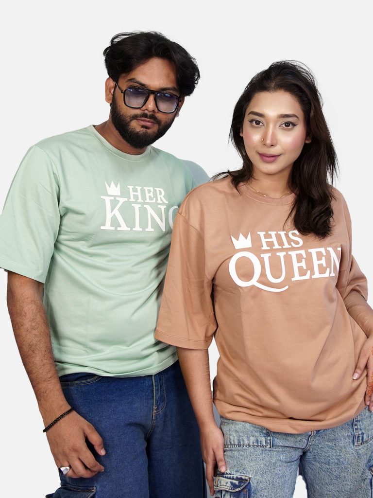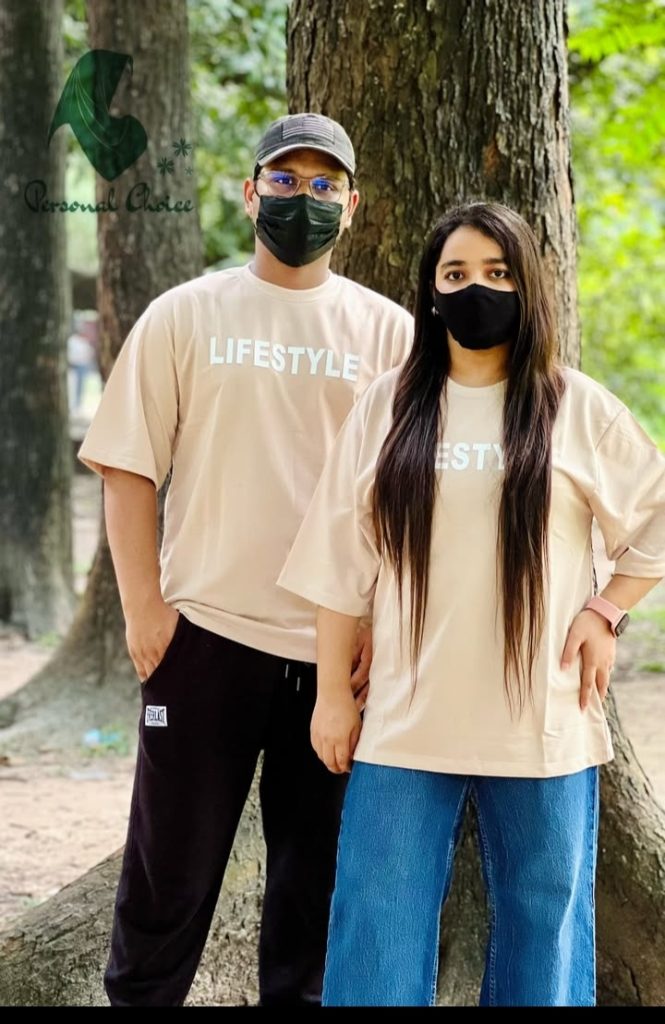 Premium Paste and Brown Color Drop Shoulder t-shirt for Men and Women couple t-shirt
