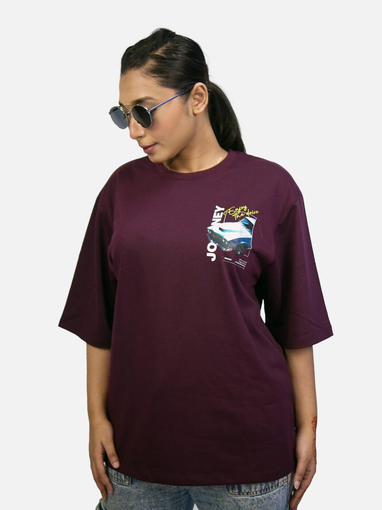 Premium Maroon Color Drop Shoulder t-shirt for Women