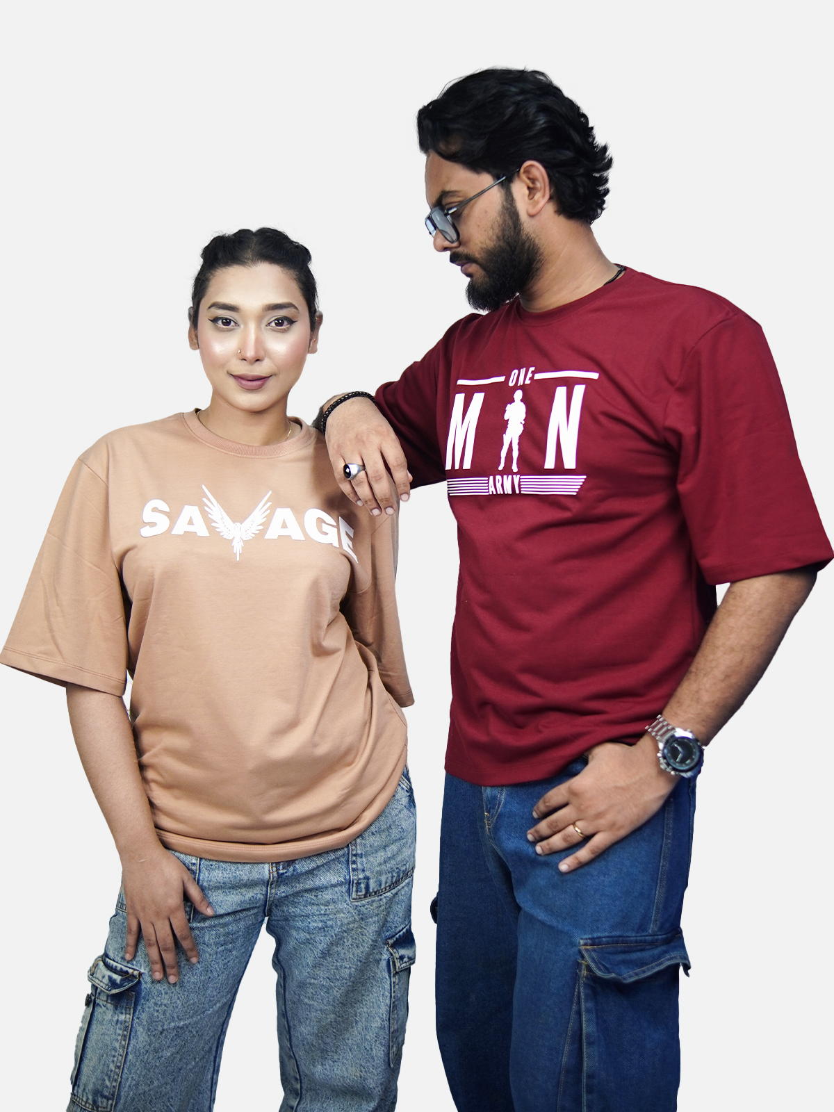 Premium Maroon and Brown Color Drop Shoulder t-shirt for Men and Women couple t-shirt
